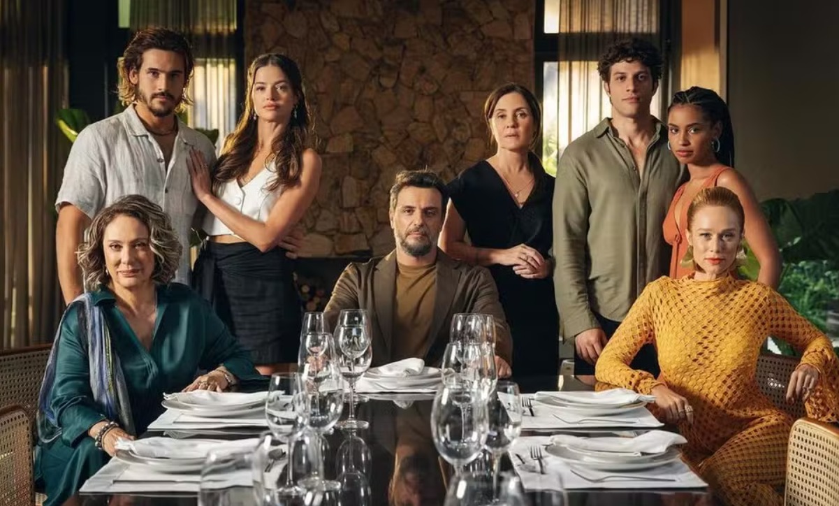 Vemos Rodrigo Lombardi bem sério, com ares de um bom vilão; Chay Suede demonstrando que será bem ganancioso; Gabz, fazendo sua estreia em novela das nove, com ares de mocinha apaixonada, mas não tonta; Ágatha Moreira com olhar de vilã, ares de Josiane de ‘A Dona Do Pedaço’ que parece não sair mais dela; Nicolas Prattes como mocinho que busca vingança; Mariana Ximenes demonstrando ganância e riqueza e Eliane Giardino falando sobre traição. Todos na mesma mesa. Rodrigo Lombardi levanta a taça de vinho e propõe um brinde. Todos brindam.