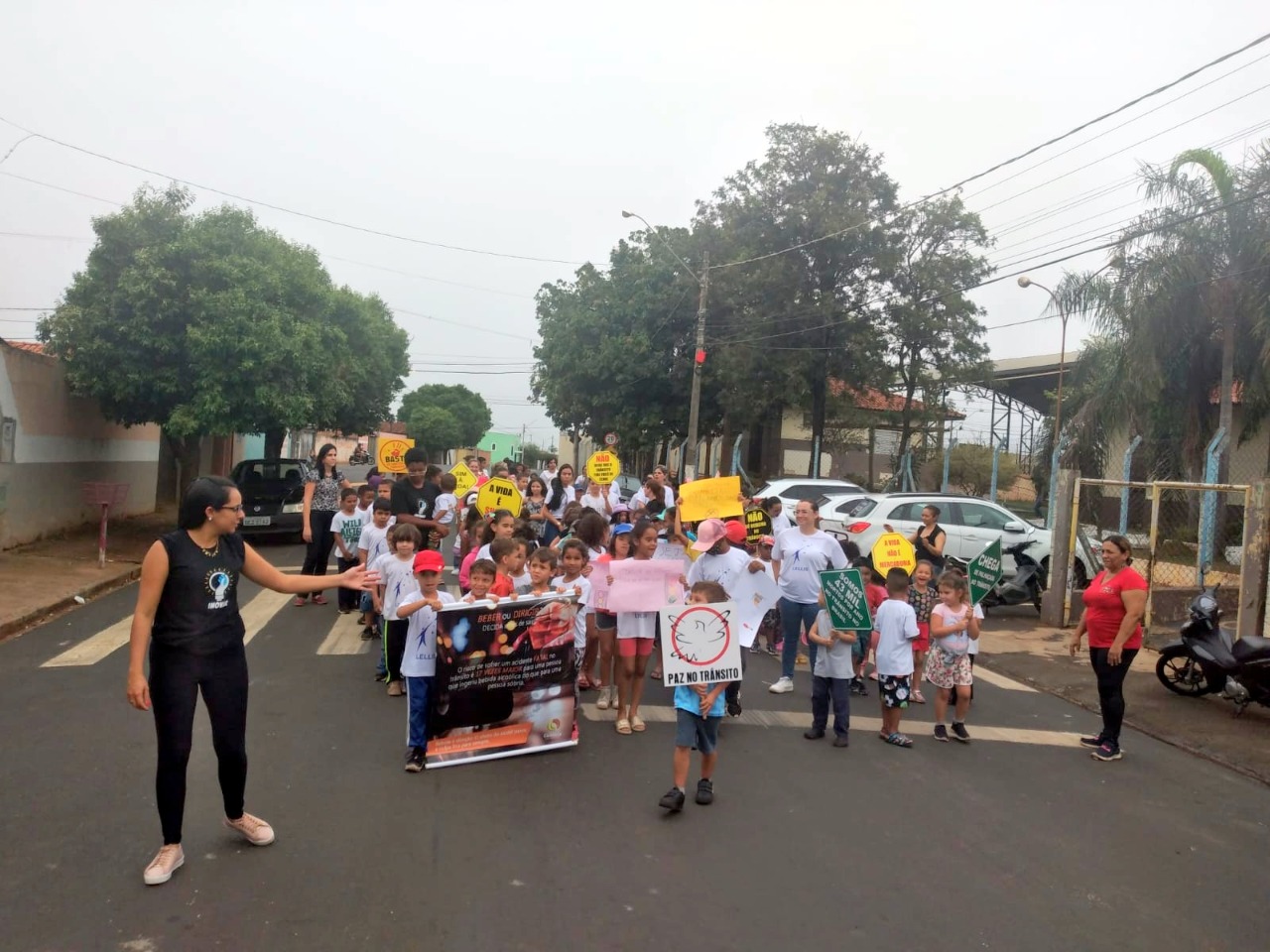 ‘O trânsito é o quê?’ Vida! respondiam os alunos da escola Emeb Profª Lellis do Amaral Campos, durante a passeata que acontece na manhã de quarta-feira (20). A ação fez parte das comemorações da Semana Nacional do Trânsito, que acontece de 18 a 25 de setembro: “Ao longo desta semana, vivenciamos experiências e histórias novas que valeram muito. A alegria dos alunos e o empenho de toda a equipe Lellis, me deixa a certeza de que a educação é o único caminho para construímos um futuro melhor”, avalia a diretora da escola Sônia Paro.