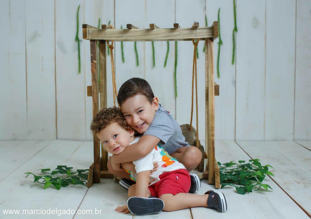 Amor dos irmãos Bento e Arthur que são só alegria juntos, o amor da família. (Foto: Marcio Delgado)
