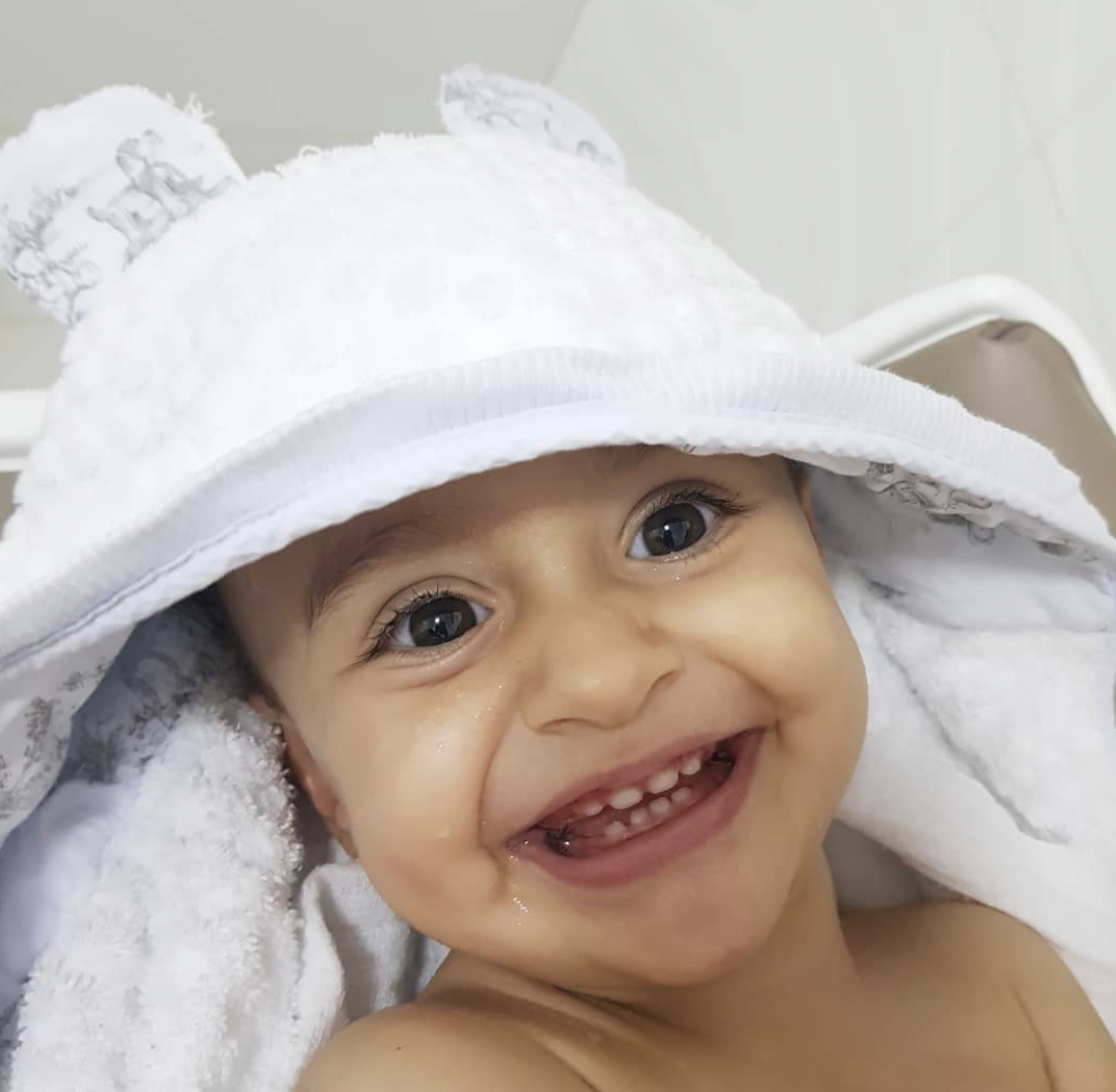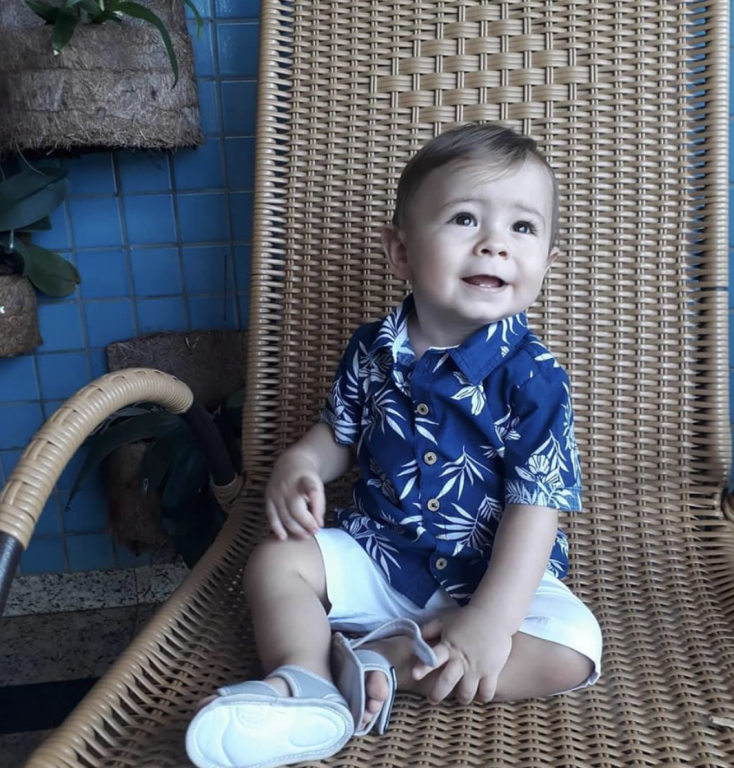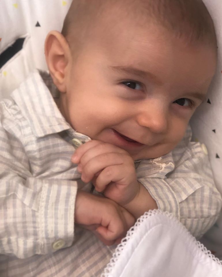 Theo completa 7 meses e comemora com a páscoa sua data.