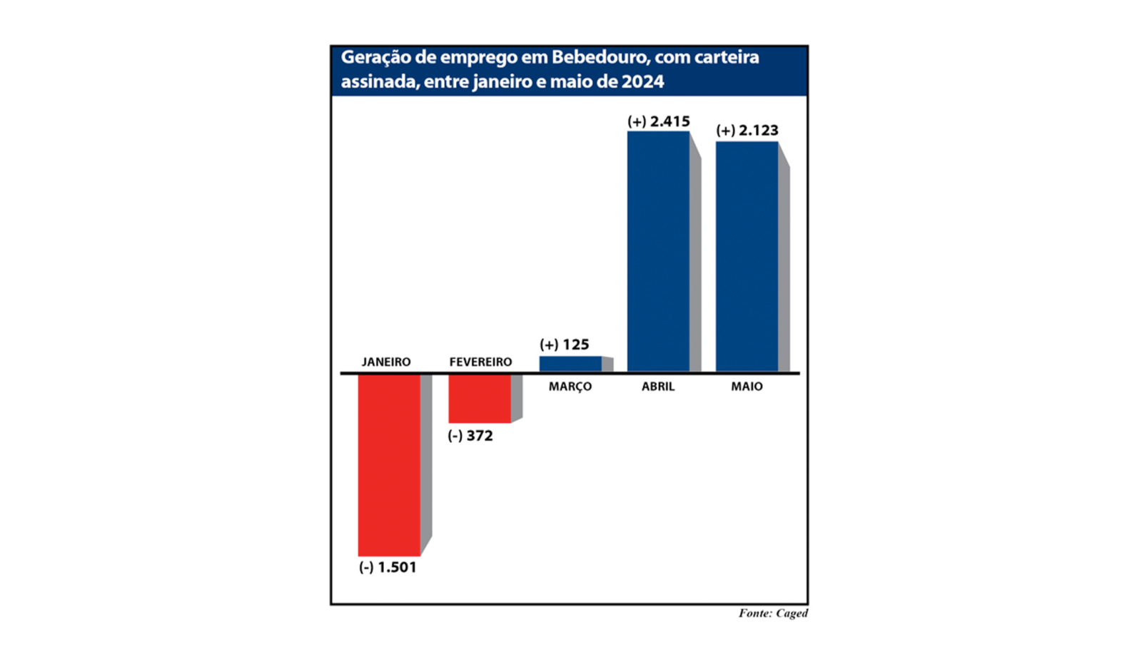 O Caged (Cadastro Geral de Empregados e Desempregados), do Ministério da Economia, informa que em maio, Bebedouro fechou com saldo positivo na geração de empregos, tendo assinado a carteira de 2.123 trabalhadores. Este resultado foi obtido após o registro de 3.445 admissões e 1.322 desligamentos.