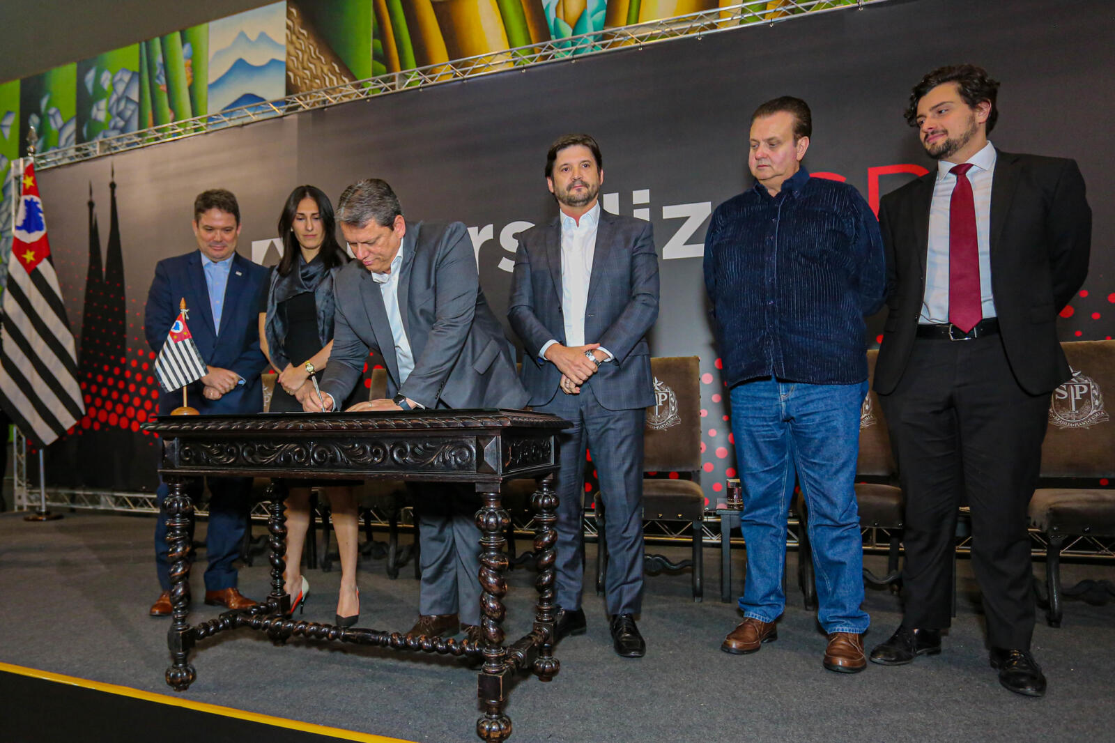 O governador Tarcísio de Freitas assinou na terça-feira (18), decreto que institui o programa para agilizar a universalização dos serviços de saneamento no estado de São Paulo. Por meio do UniversalizaSP, o Estado vai oferecer apoio técnico a prefeituras com serviços ou autarquias municipais de água e esgoto para estruturação e modelagem de projetos de expansão, de acordo com as metas previstas pelo Novo Marco do Saneamento. Na ocasião, Bebedouro foi representada pelo prefeito Lucas Seren e pelo presidente do Saaeb Ambiental, Gilmar Feltrim.