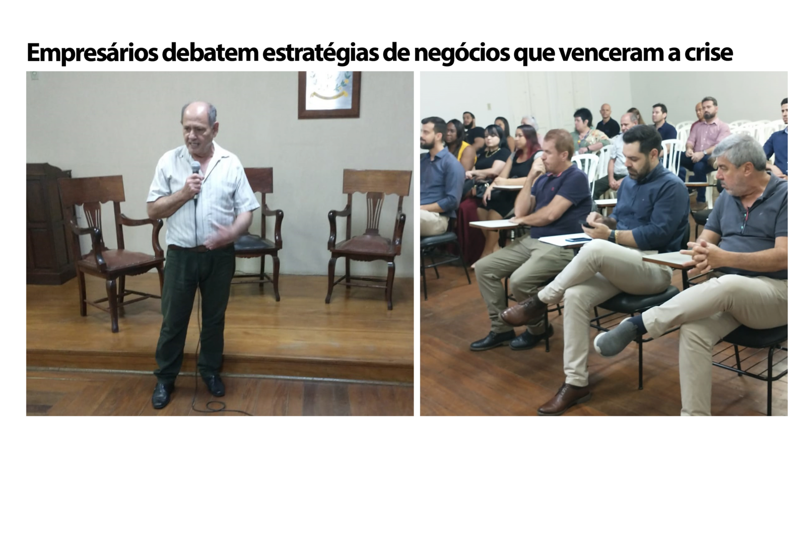 Cerca de 40 empresários reuniram-se na noite segunda-feira (2), para debater estratégias de negócios que venceram a crise, no auditório do Senac/Bebedouro e palestras de dois empresários da cidade: Nicolas Tonetto, fundador da academia Orangym e Thales Mazzeo,