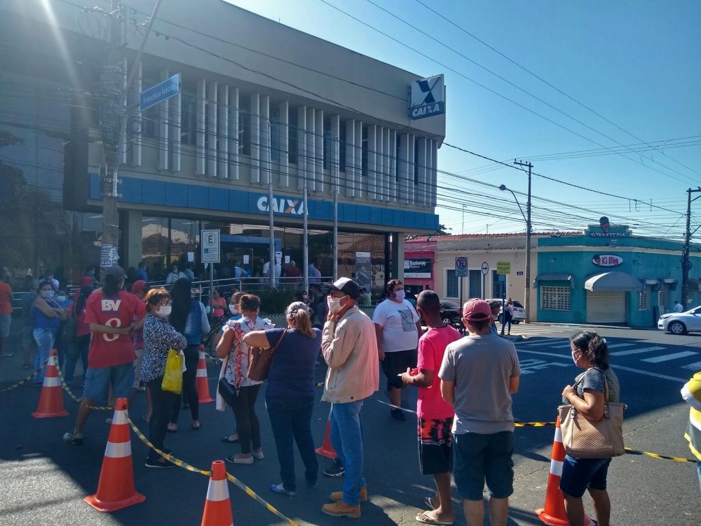 Com grande fila desde quinta-feira (30 de abril), agências da Caixa Econômica Federal recebem beneficiários do Auxílio Emergencial estabelecido pelo Governo Federal. Em Bebedouro, a situação que colocava em risco centenas de bebedourenses está sendo amenizada, através da Prefeitura Municipal.