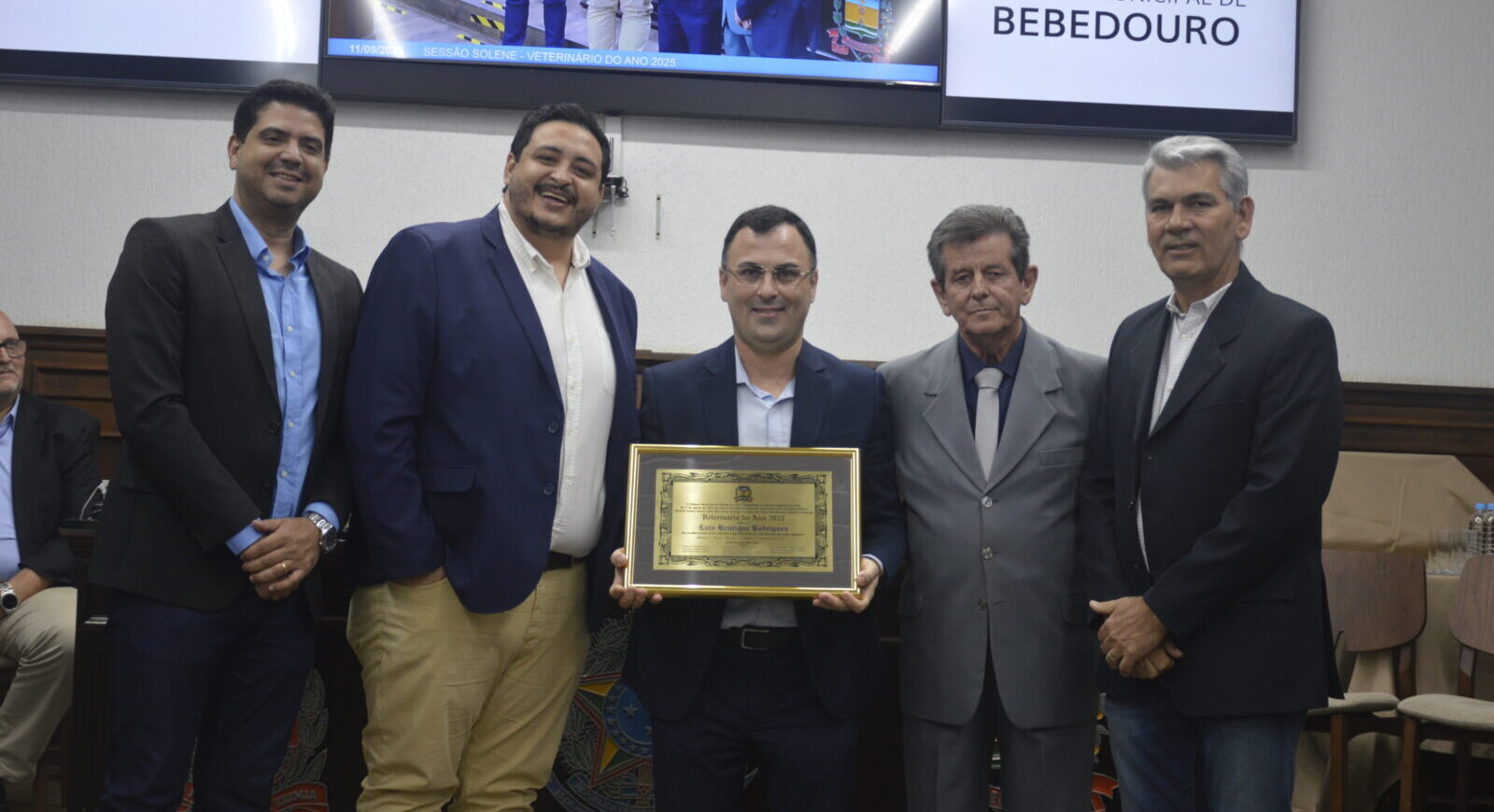 A Câmara Municipal realizou, na noite de quinta-feira (11), sessão solene para a entrega do título Veterinário do Ano 2025 ao médico Luiz Henrique Rodrigues, fundador do Hospital Leal Núcleo Médico Veterinário. Na mesma ocasião, outros 11 profissionais também receberam o título de Honra ao Mérito pelos serviços prestados à medicina veterinária e à comunidade.