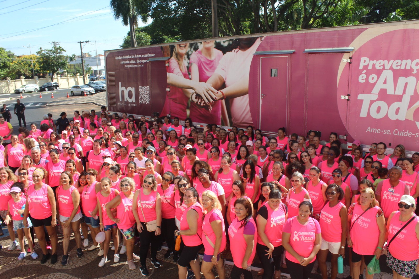 Centenas de pessoas participaram da “Caminhada Rosa” que percorreu diversas ruas do centro, com final na praça Barão do Rio Branco, no sábado (9), levando informação e sensibilizando a população sobre a importância da prevenção e do diagnóstico precoce de câncer.