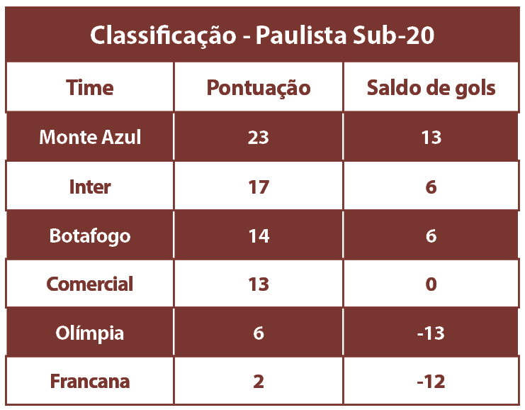 Pelo Campeonato Paulista Sub-20, a Inter deu, nesta quarta-feira (22), um grande passo para a classificação. Venceu o Botafogo de Ribeirão Preto em casa, por 2 a 0, em jogo da nona rodada, e chegou a 17 pontos, na segunda colocação. O Botafogo ficou com 14, em terceiro. O Grupo é liderado pelo Monte Azul, com 23.