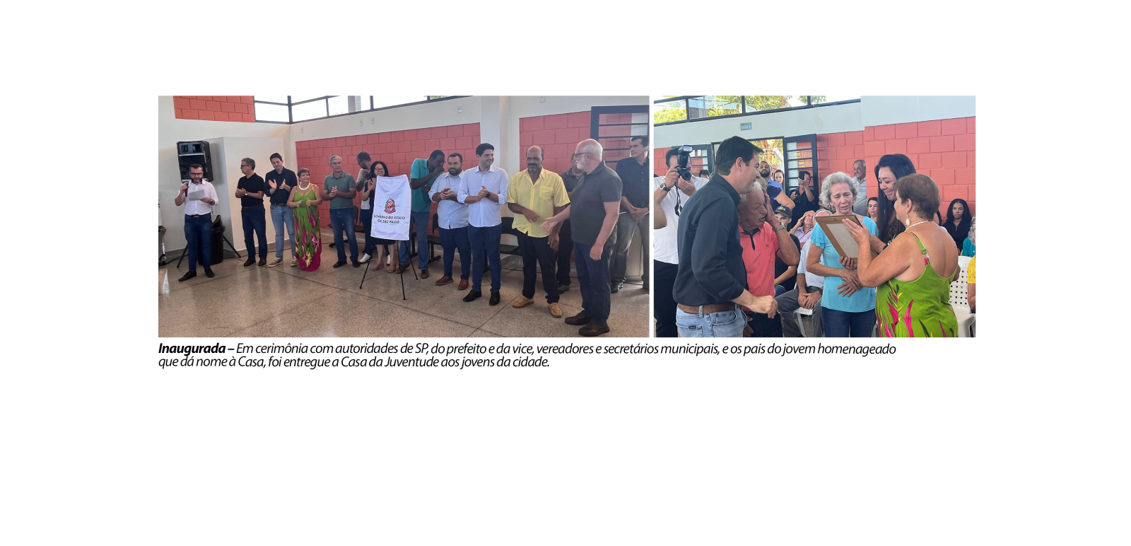 Na manhã de quarta-feira (8), a Prefeitura de Bebedouro inaugurou a Casa da Juventude, no Residencial Bebedouro, na presença do prefeito Lucas Seren, da vice-prefeita Sebastiana Tavares, autoridades estaduais como o secretário de Justiça, Fábio Prieto e municipais. O espaço ganhou o nome de João Lucas da Silva, que aos 15 anos descobriu câncer no joelho e lutou contra a doença até os 24 anos, quando faleceu.