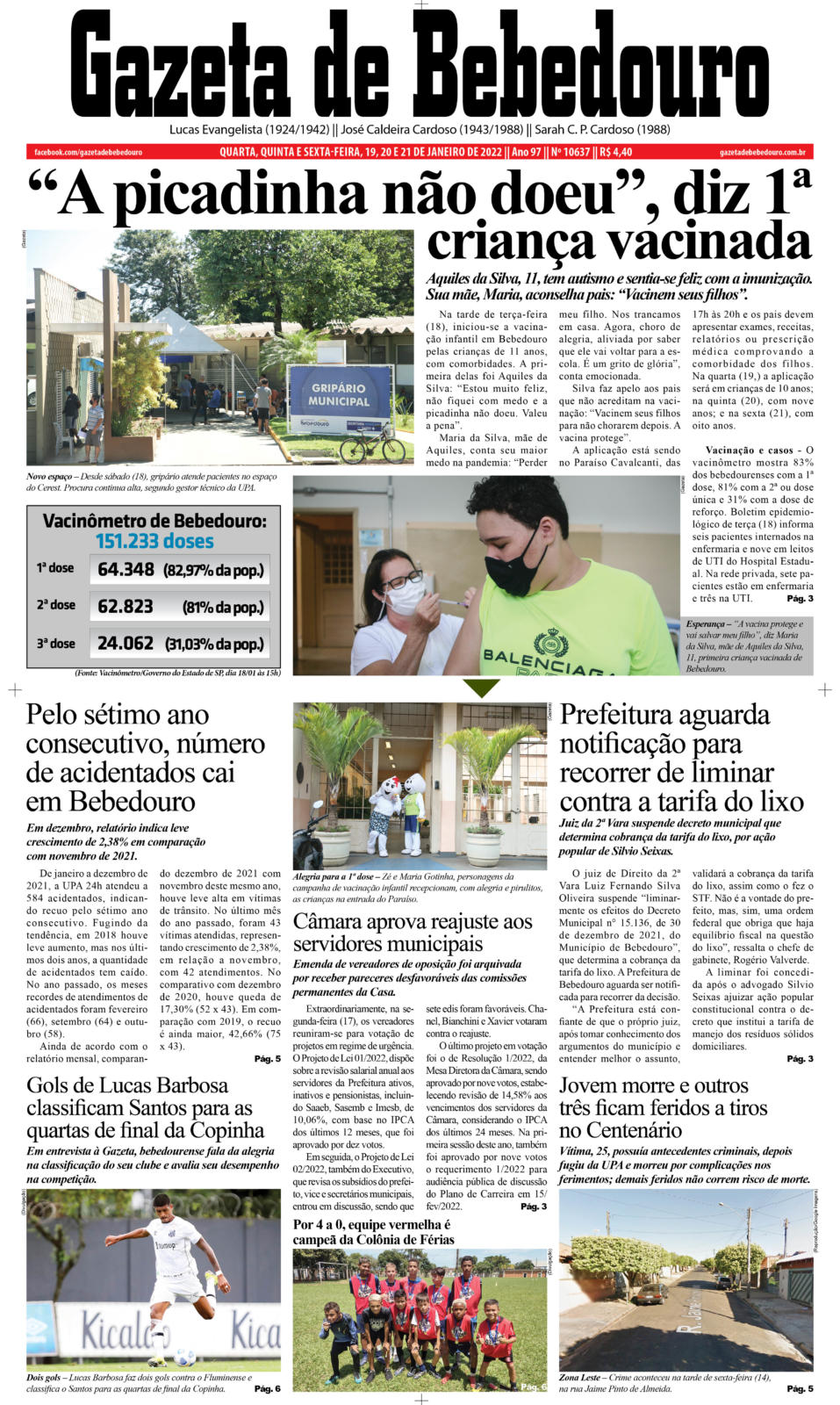 Na tarde de terça-feira (18), iniciou-se a vacinação infantil em Bebedouro pelas crianças de 11 anos, com comorbidades. A primeira delas foi Aquiles da Silva: “Estou muito feliz, não fiquei com medo e a picadinha não doeu. Valeu a pena”.