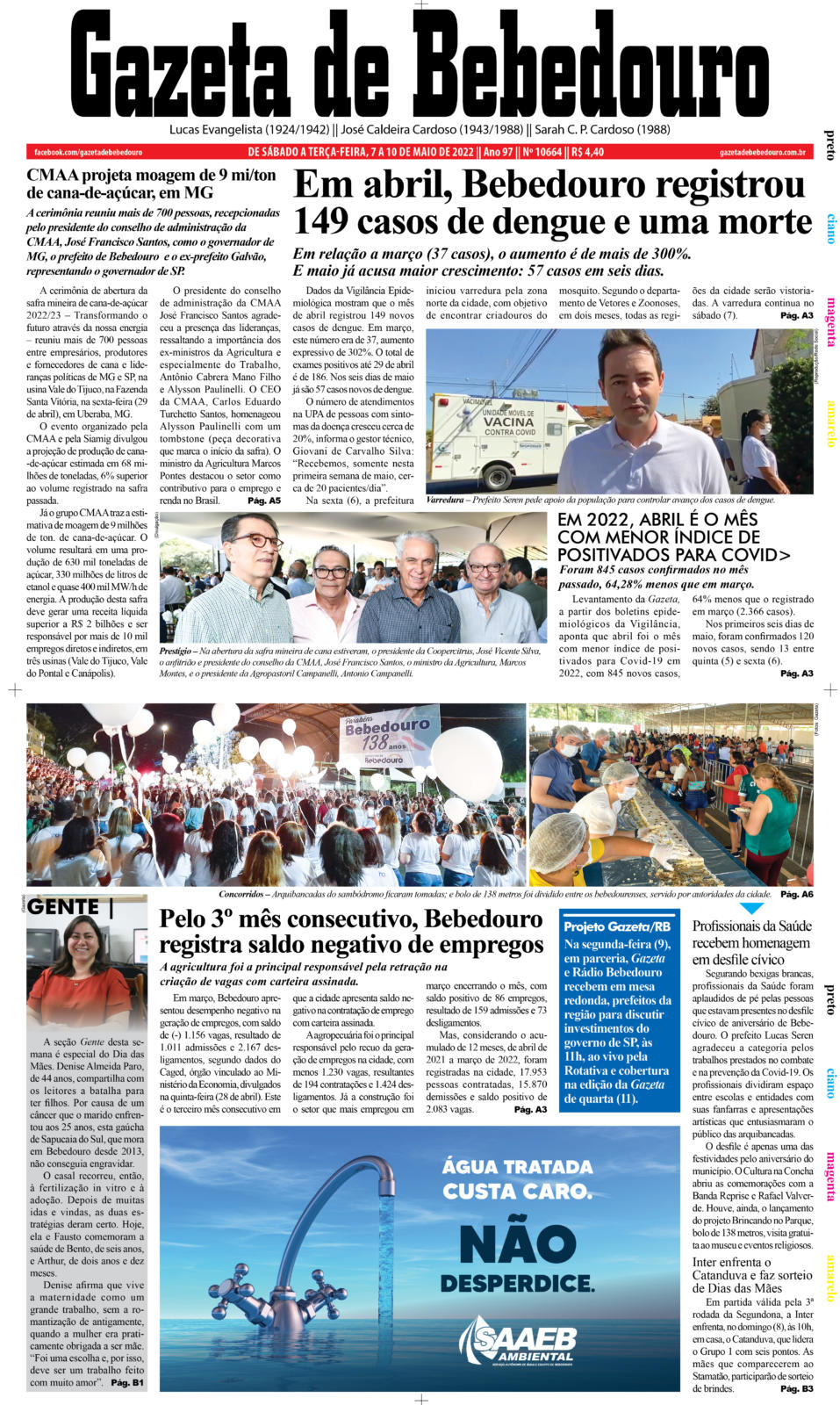 Dados da Vigilância Epidemiológica mostram que o mês de abril registrou 149 novos casos de dengue. Em março, este número era de 37, aumento expressivo de 302%. O total de exames positivos até 29 de abril é de 186. Nos seis dias de maio já são 57 casos novos de dengue.