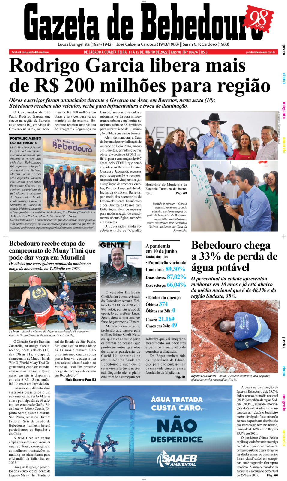 O Governador de São Paulo Rodrigo Garcia, que esteve na região de Barretos nesta sexta (10), em visita do Governo na Área, anunciou mais de R$ 200 milhões em obras e serviços para vários municípios do entorno. Bebedouro recebeu uma viatura do Programa Segurança no Campo, mais sete veículos e máquinas, verba para infraestrutura urbana e melhorias no turismo, além de R$ 5 milhões para substituição de iluminação pública em vários bairros.
