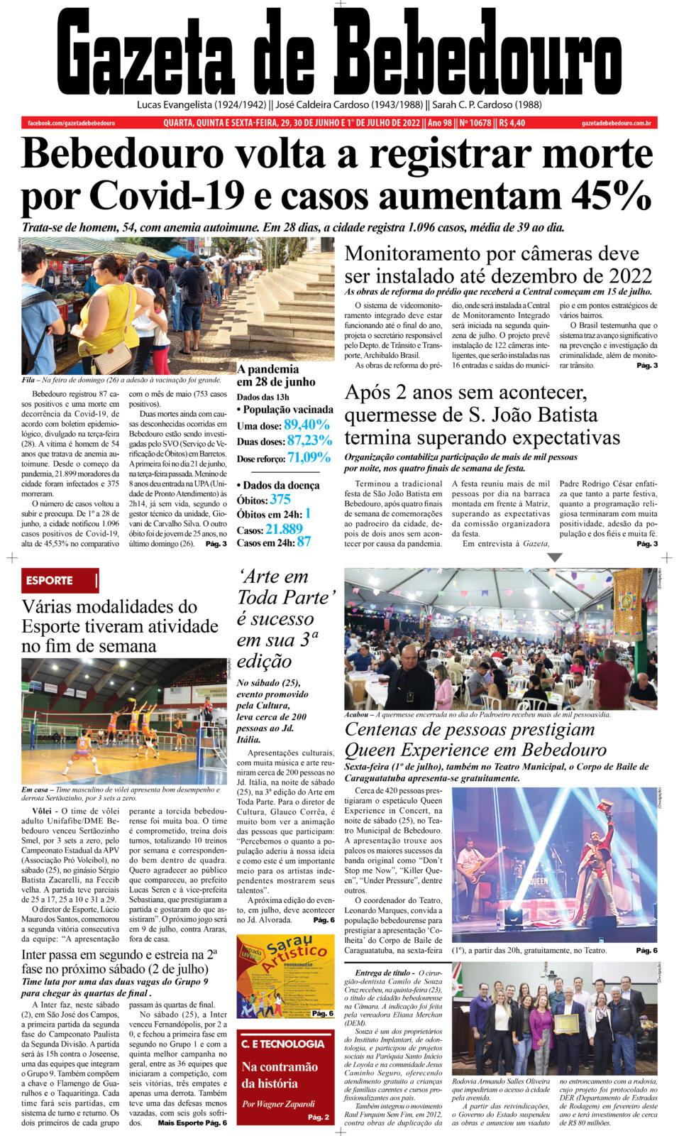 Bebedouro registrou 87 casos positivos e uma morte em decorrência da Covid-19, de acordo com boletim epidemiológico, divulgado na terça-feira (28). A vítima é homem de 54 anos que tratava de anemia autoimune. Desde o começo da pandemia, 21.899 moradores da cidade foram infectados e 375 morreram.