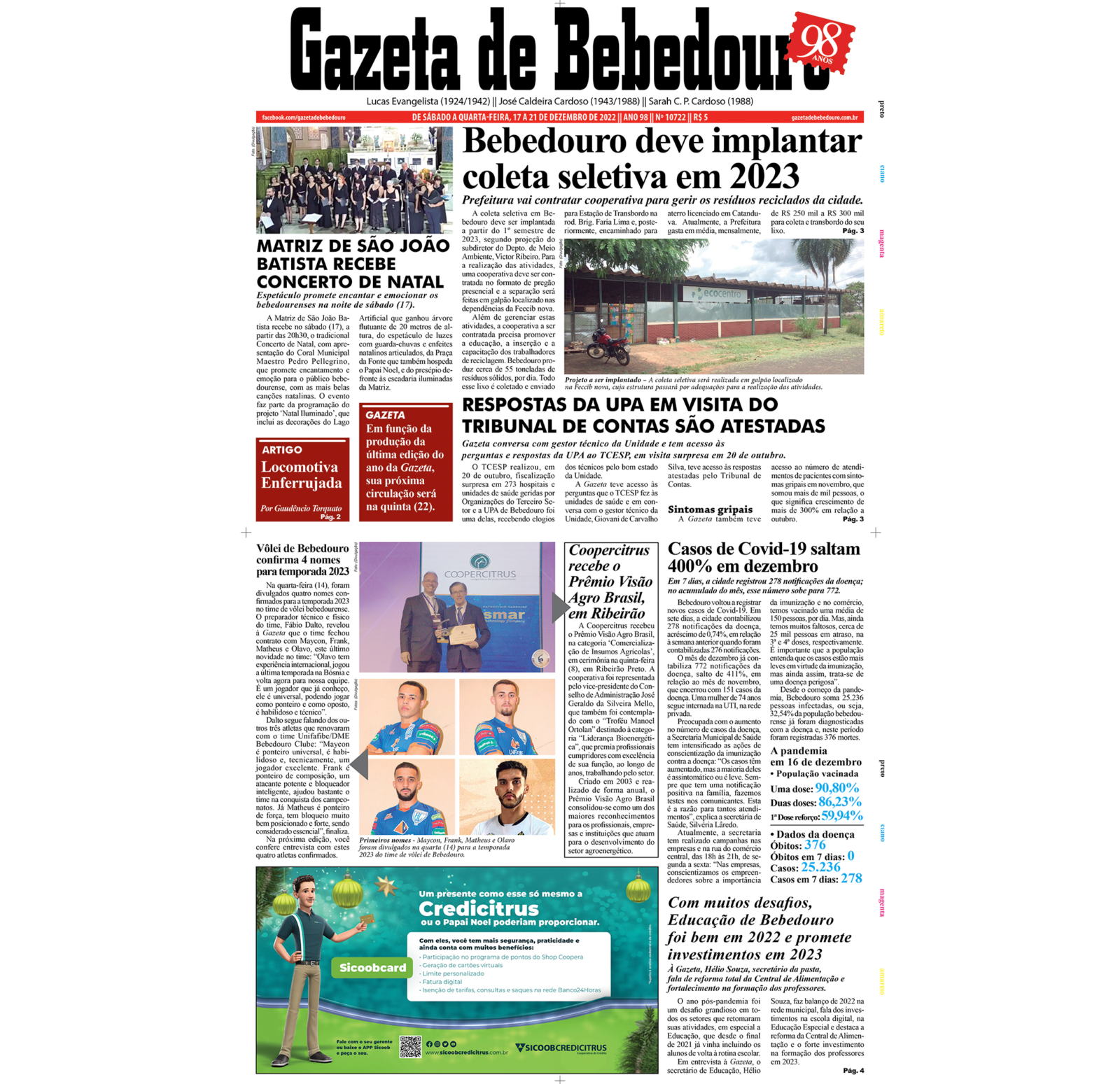 A coleta seletiva em Bebedouro deve ser implantada a partir do 1º semestre de 2023, segundo projeção do subdiretor do Depto. de Meio Ambiente, Victor Ribeiro. Para a realização das atividades, uma cooperativa deve ser contratada no formato de pregão presencial e a separação será feitas em galpão localizado nas dependências da Feccib nova.