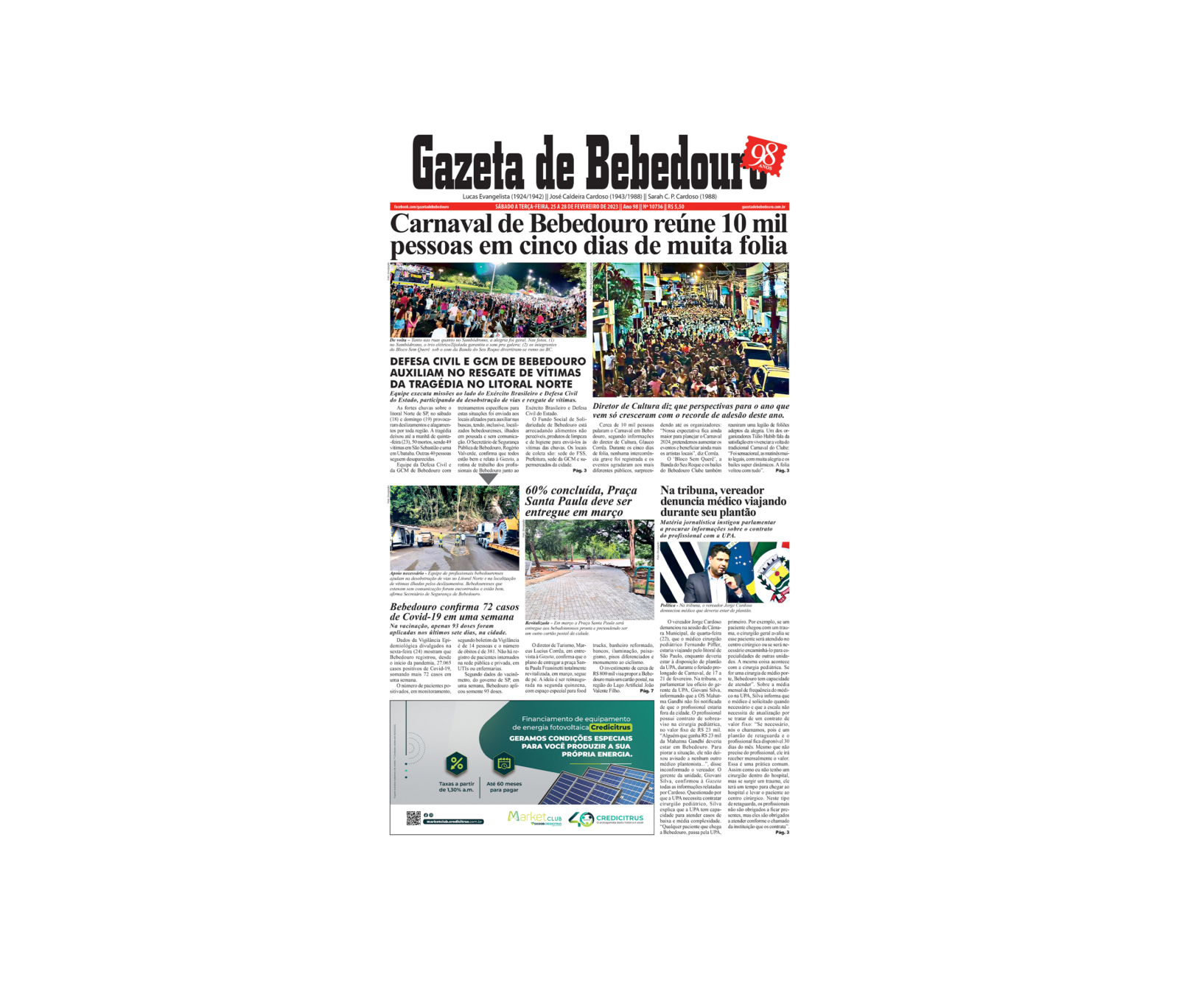 Cerca de 10 mil pessoas pularam o Carnaval em Bebedouro, segundo informações do diretor de Cultura, Glauco Corrêa. Durante os cinco dias de folia, nenhuma intercorrência grave foi registrada e os eventos agradaram aos mais diferentes públicos, surpreendendo até os organizadores: “Nossa expectativa fica ainda maior para planejar o Carnaval 2024, pretendemos aumentar os eventos e beneficiar ainda mais os artistas locais”, diz Corrêa.