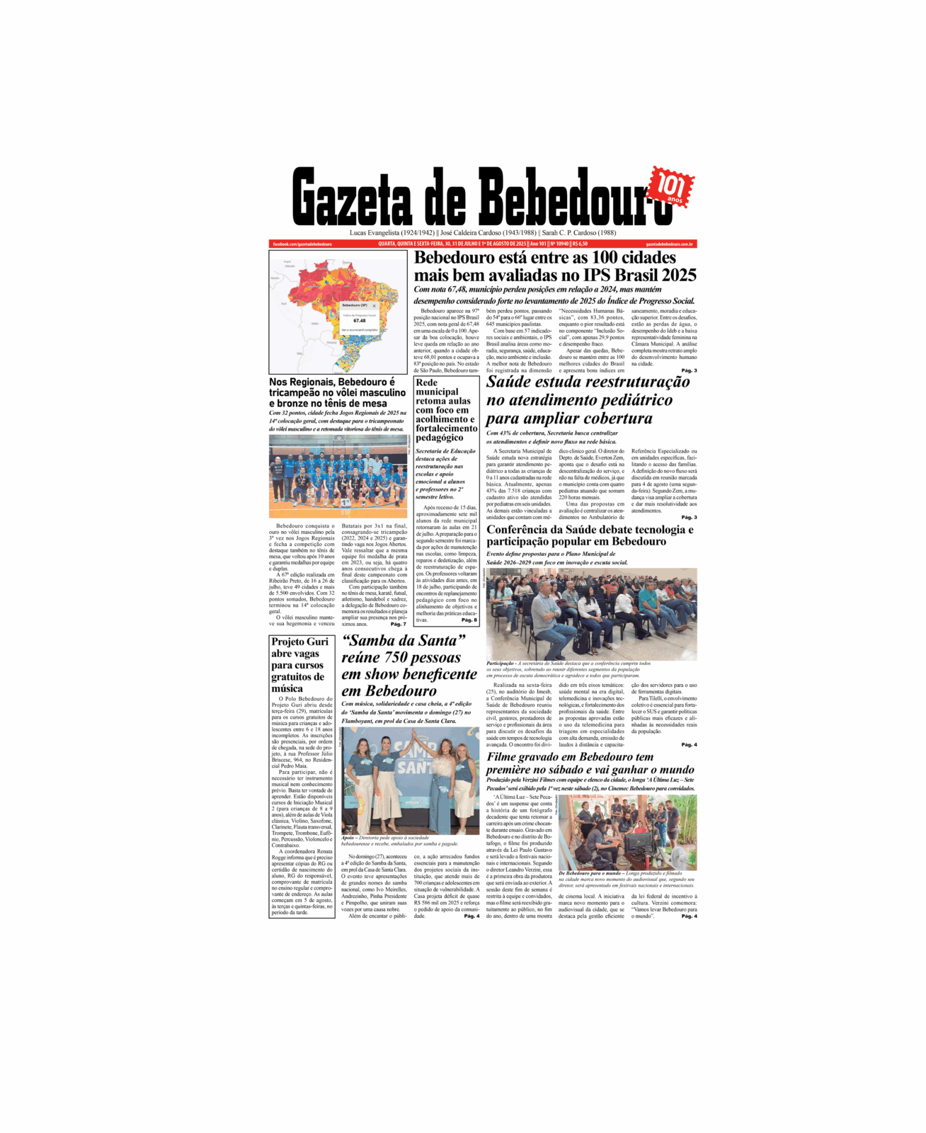 Bebedouro está entre as 100 cidades mais bem avaliadas no IPS Brasil 2025