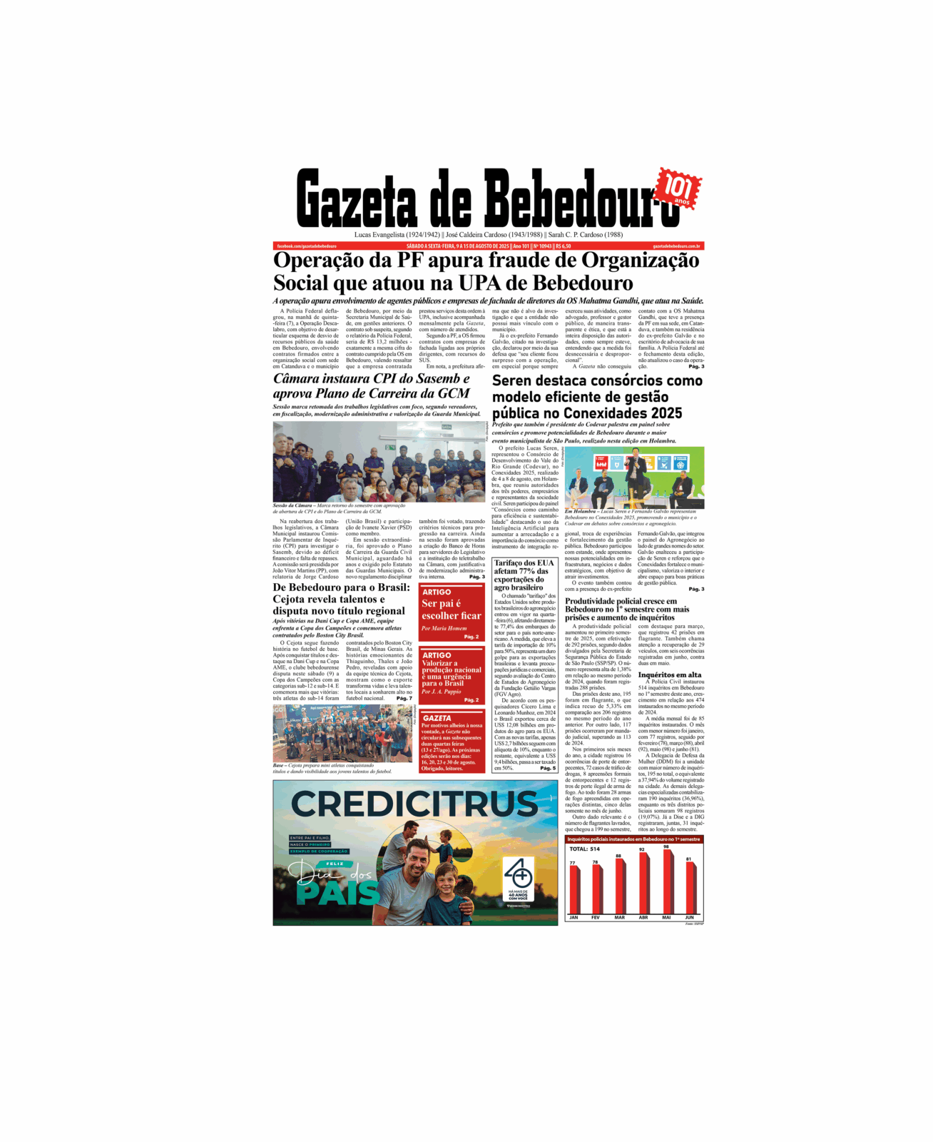 Confira a capa da edição 10.943, de sábado a sexta-feira, 9 a 15 de agosto de 2025 – Ano 101