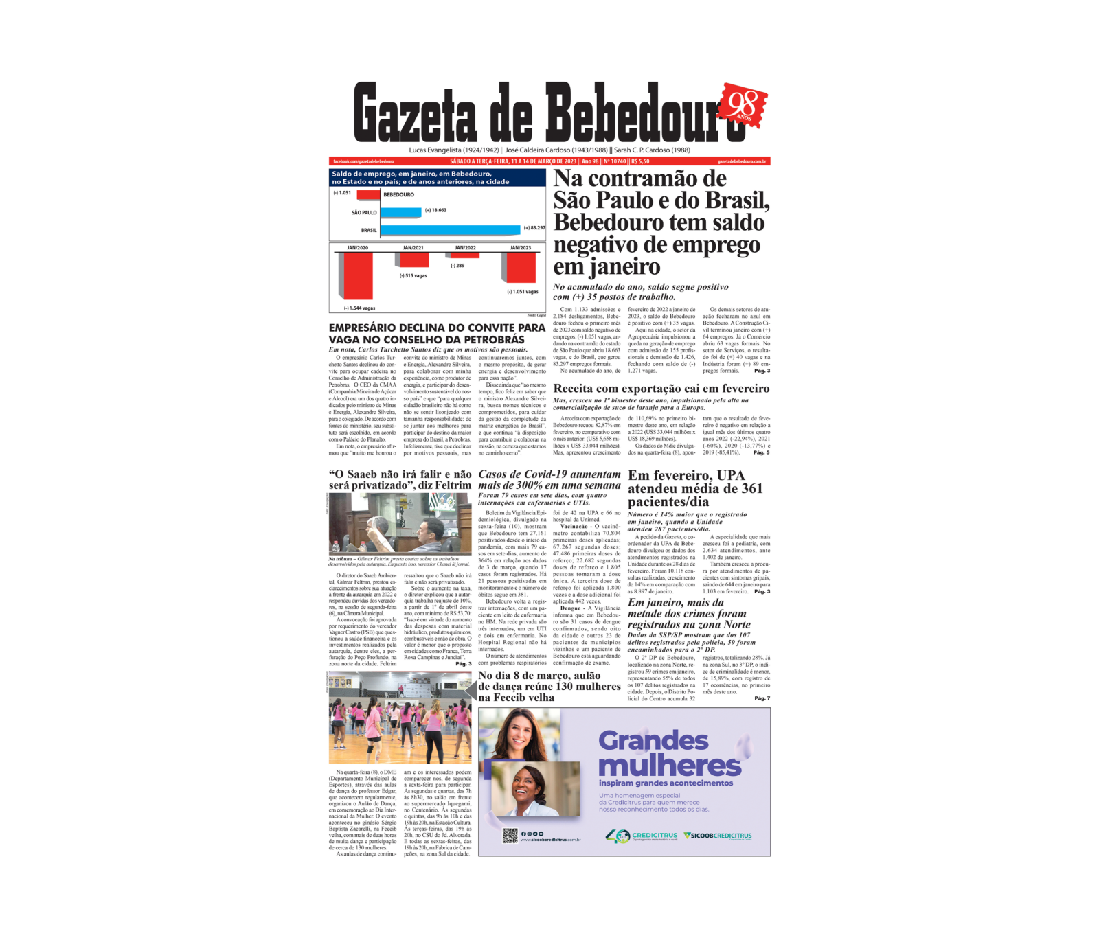 Com 1.133 admissões e 2.184 desligamentos, Bebedouro fechou o primeiro mês de 2023 com saldo negativo de empregos: (-) 1.051 vagas, andando na contramão do estado de São Paulo que abriu 18.663 vagas, e do Brasil, que gerou 83.297 empregos formais.