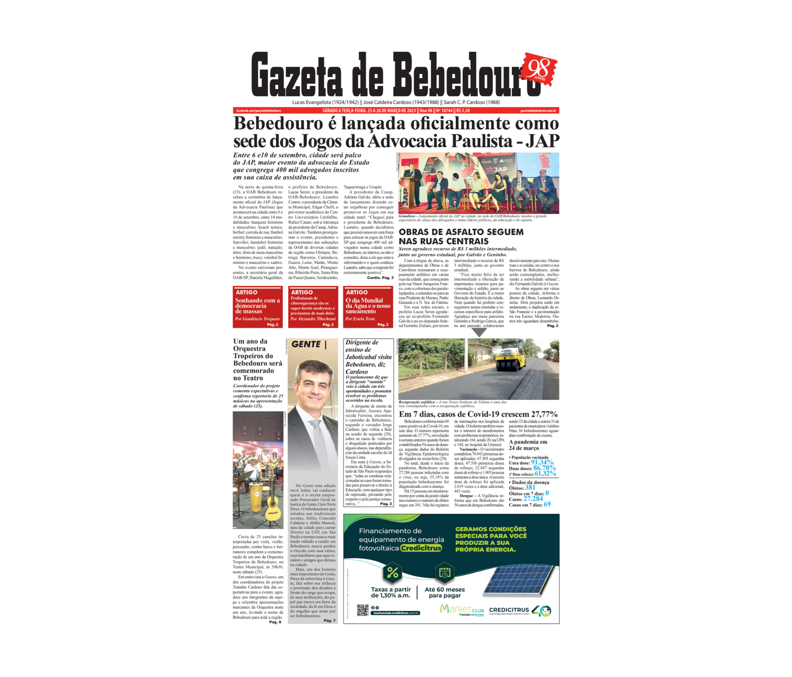 Na noite de quinta-feira (23), a OAB Bebedouro recebeu a cerimônia de lançamento oficial do JAP (Jogos da Advocacia Paulista) que acontecerá na cidade entre 6 e 10 de setembro, entre 14 modalidades: basquete feminino e masculino; beach tennis; biribol; corrida de rua; futebol society feminino e masculino; futevôlei; handebol feminino e masculino; judô; natação; tênis; tênis de mesa masculino e feminino; truco; voleibol feminino e masculino e xadrez.