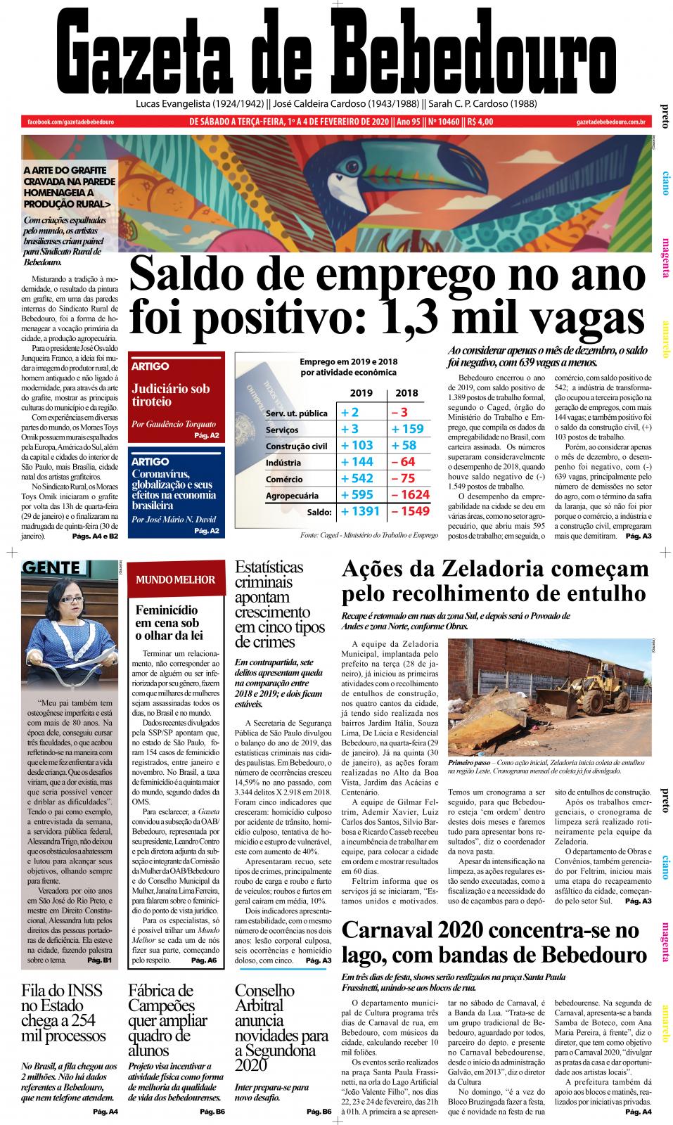 Bebedouro encerrou o ano de 2019, com saldo positivo de 1.389 postos de trabalho formal, segundo o Caged, órgão do Ministério do Trabalho e Emprego, que compila os dados da empregabilidade no Brasil, com carteira assinada. Os números superaram consideravelmente o desempenho de 2018, quando houve saldo negativo de (-) 1.549 postos de trabalho.