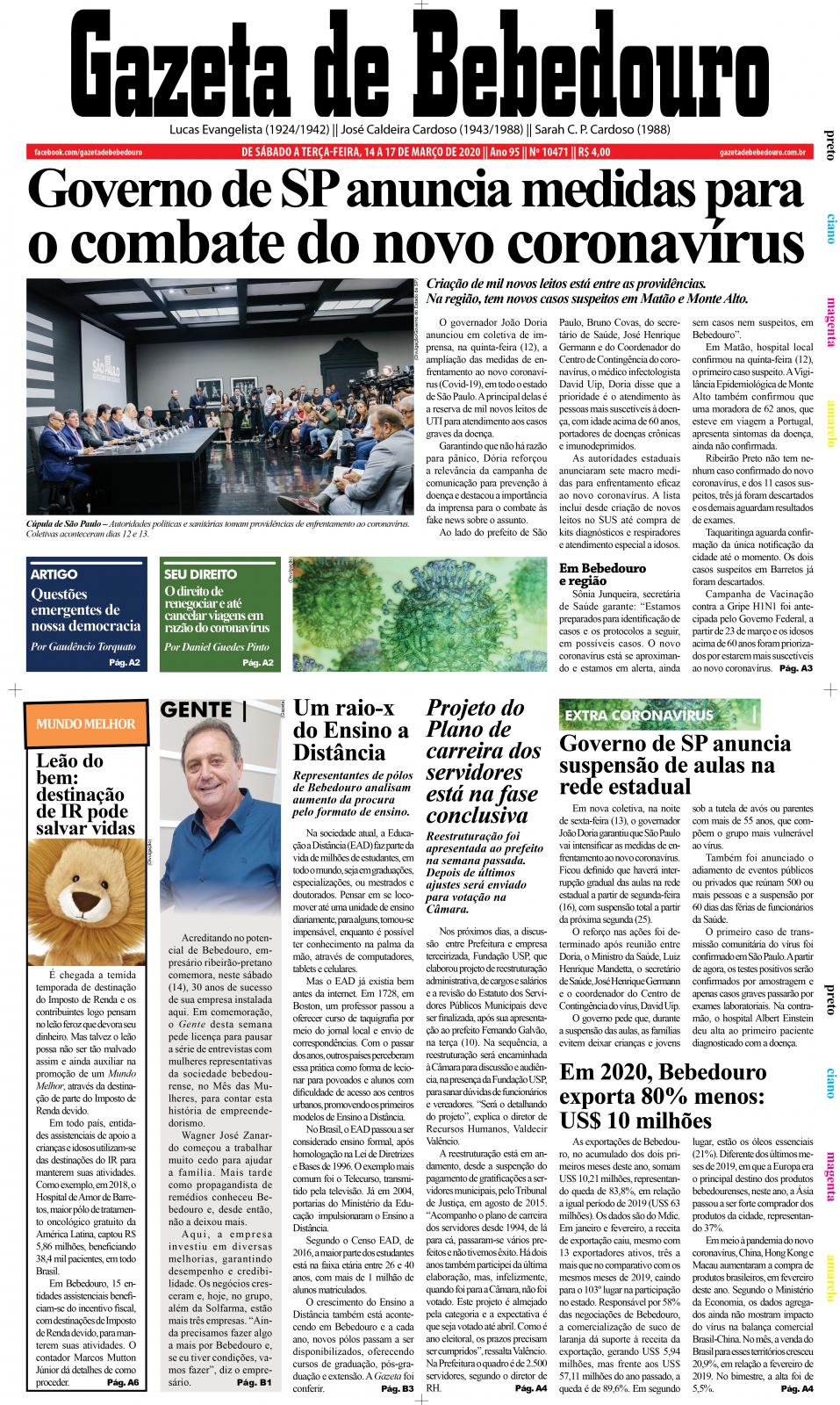 Ao lado do prefeito de São Paulo, Bruno Covas, do secretário de Saúde, José Henrique Germann e do Coordenador do Centro de Contingência do coronavírus, o médico infectologista David Uip, Doria disse que a prioridade é o atendimento às pessoas mais suscetíveis à doença, com idade acima de 60 anos, portadores de doenças crônicas e imunodeprimidos.