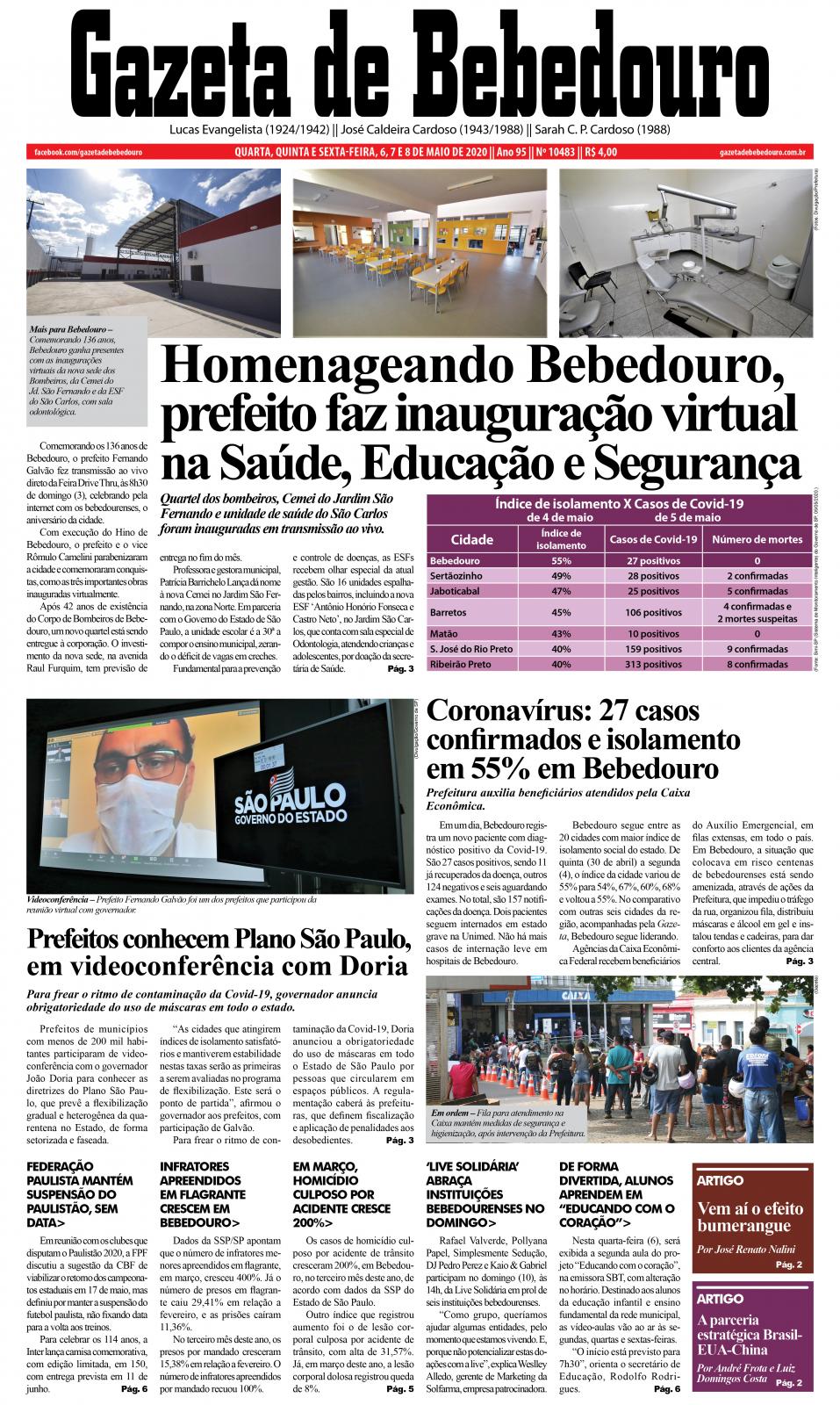 Com execução do Hino de Bebedouro, o prefeito e o vice Rômulo Camelini parabenizaram a cidade e comemoraram conquistas, como as três importantes obras inauguradas virtualmente.