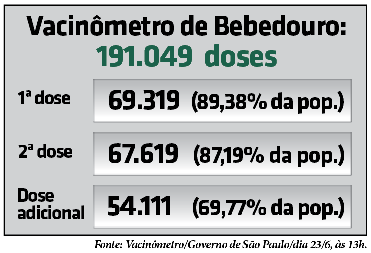 A Secretaria da Saúde de Bebedouro começou a aplicar, na quinta-feira (23), a 4ª dose da vacina contra Covid-19 em pessoas com mais de 40 anos. O início no município foi anunciado depois que o Ministério da Saúde autorizou, na segunda (20), a vacinação para este grupo etário.
