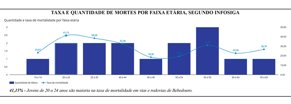 Dados do Infosiga, painel do governo do Estado de São Paulo que contabiliza mortes em rodovias e vias municipais por acidentes de trânsito, divulga que em setembro não houve registros de óbitos nas rodovias que circundam Bebedouro, ao contrário de agosto que havia registrado duas mortes. Na comparação com setembro do ano passado, também houve queda, pois o nono mês de 2023, também registrou duas mortes no trânsito.