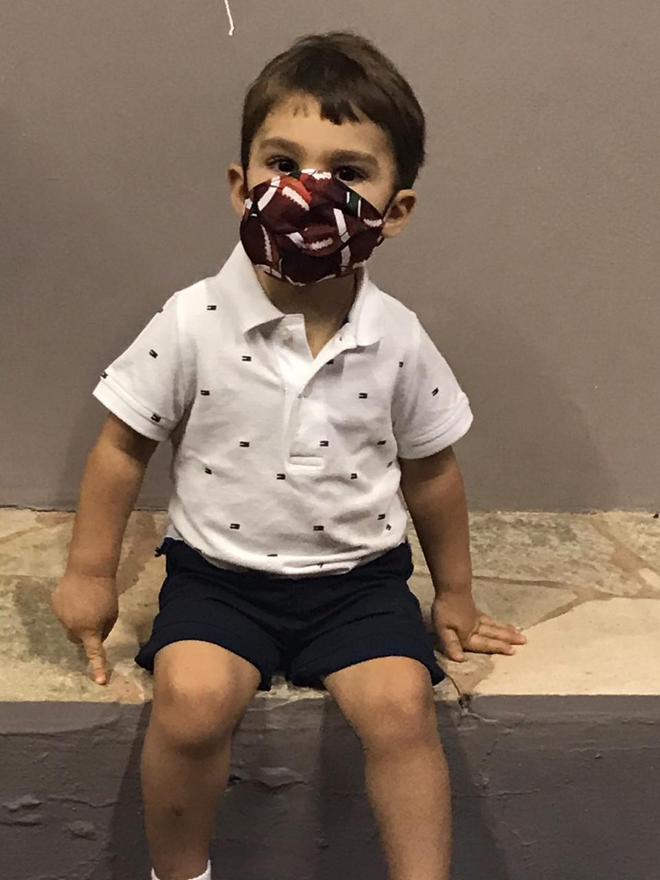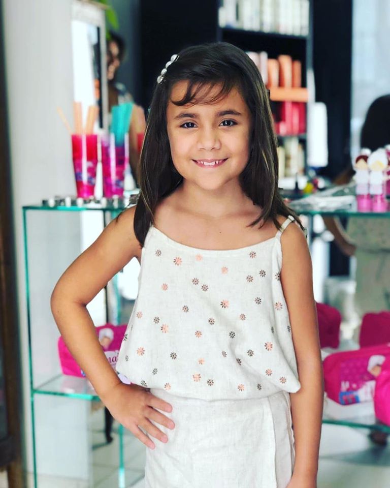 Maria Clara Caliari já é toda estilosa e está sempre linda assim. A máscara é para lembrar a todos do uso obrigatório.