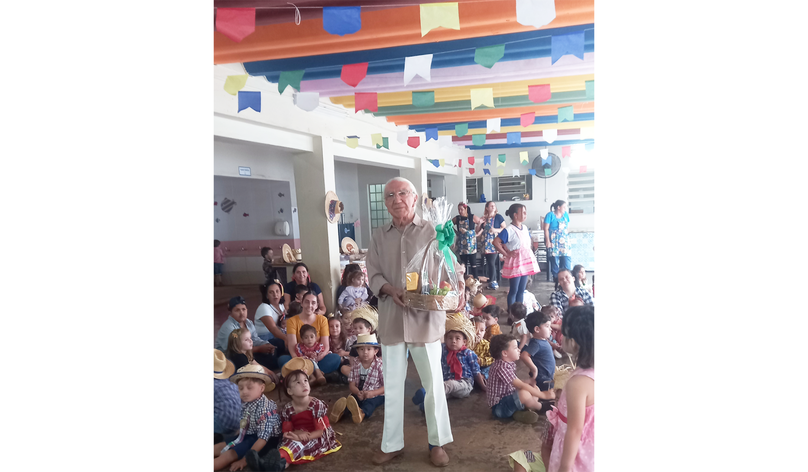 Durante a Festa Junina da Casa da Criança “Irmã Crucifixa”, o comerciante aposentado Diágoras Albuquerque, 84, recebeu homenagem em agradecimento por sua doação, em vida, da casa que se tornará creche Regina Ferreira da Silva e Janaina Alves de Albuquerque, nome de sua filha e esposa falecidas.