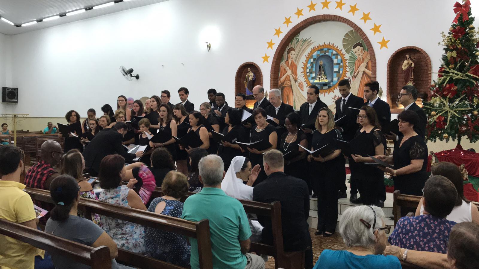 Na noite de sábado (16), foi a vez da paróquia Nossa Senhora Aparecida, do distrito de Botafogo receber o ‘Concerto de Natal’, apresentado pelos corais Maestro Pedro Pellegrino, Ritornello e Schola Cantorum, após a missa da paróquia. Esta foi a penúltima apresentação da série especial, que se encerra no sábado (23), na igreja Matriz de São João Batista.