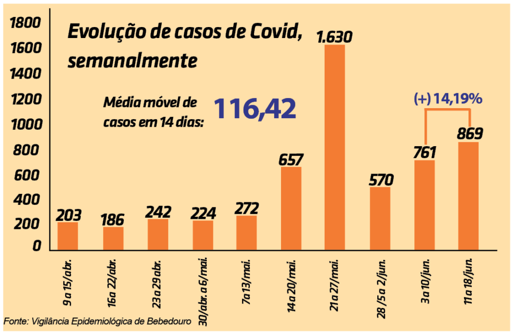 Desde o último boletim epidemiológico, referente aos dados de terça-feira (15), Bebedouro registrou mais oito vítimas fatais do vírus, até a atualização de sexta-feira (18), totalizando 270 óbitos, desde março do ano passado.