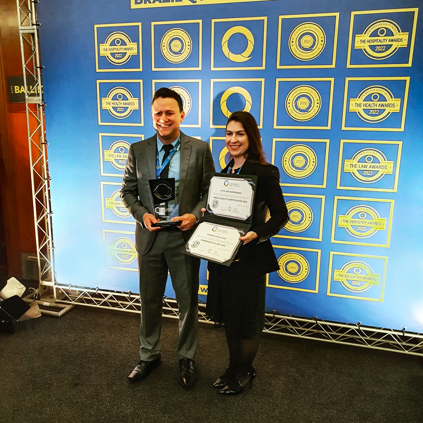 A Atto Exp Empresarial, dos bebedourenses João e Samara Fossaluza, recebeu, no dia 10 de maio, o Prêmio Empresa Brasileira do Ano 2022 concedido pelo Latin American Quality Institute (LAQI). A entrega foi no Hotel Sheraton WTC São Paulo. A Atto foi a única reconhecida no segmento de consultoria para empresas. “Para nós, é uma grande honra. Só temos a agradecer a todos os nossos clientes, parceiros, fornecedores e nossa equipe maravilhosa. Esta premiação é de todos vocês.”, diz a sócia Samara. “Podemos ter certeza de que nossos objetivos estão sendo atingidos, que é um trabalho de qualidade, responsabilidade total, sustentabilidade e desenvolvimento socioeconômico”, reforça João Fossaluza.