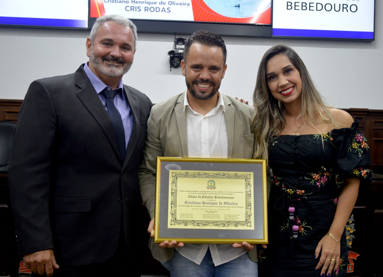 O empresário Cristiano Henrique de Oliveira recebeu na noite de sexta-feira (20), a entrega do título de cidadania bebedourense, com a presença de amigos e familiares.