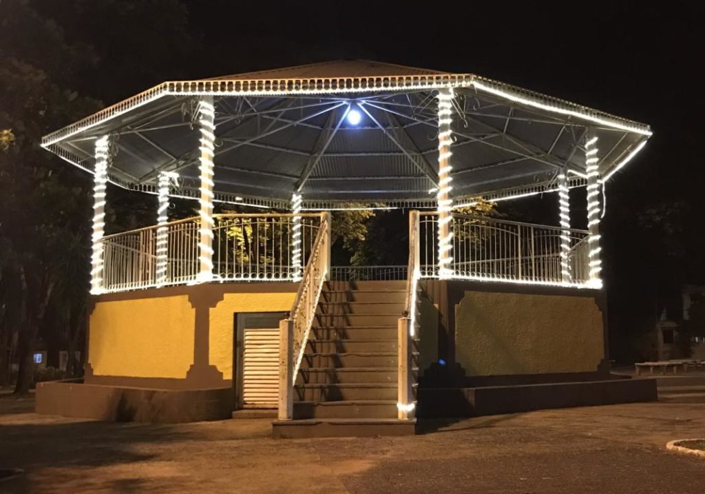 O coreto da praça Abel de Freitas, no Jd. Paraíso, ganha iluminação de Natal. Vale a pena visitar e apreciar o local encantador.