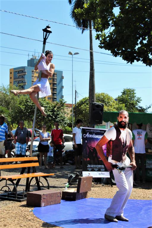 Quem passou pela praça Barão do Rio Branco, em frente à Fonte Sonora Gazeta de Bebedouro, na manhã de sábado (30 de março), parou para assistir o espetáculo circense de dança e acrobacias “Acrodançando”.