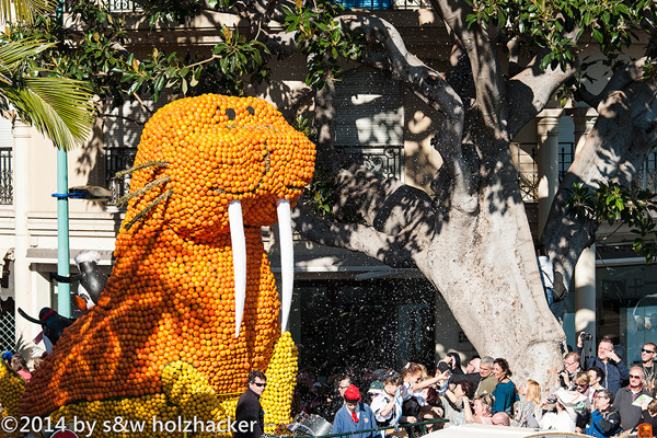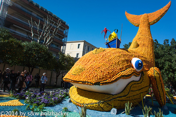 O festival Fete du Citron (Festival do Limão), na França, exibe carros alegóricos feitos com laranjas e limões. Cerca de 145 toneladas das frutas cítricas foram usadas na construção de criaturas marinhas, como baleias, peixes e polvos. Para montar as obras de arte, os artistas fixaram as frutas, uma a uma, em armações de arame. O festival ocorre anualmente na cidade de Menton, na região da Riviera Francesa. Após o evento, as frutas serão transformadas em geleia, em fábricas artesanais da cidade.