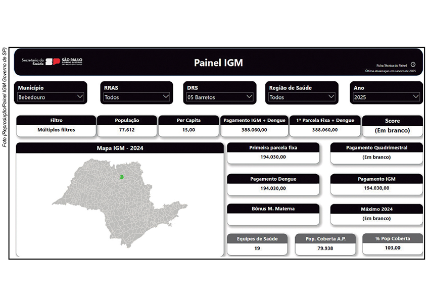 O Governo do Estado de São Paulo anunciou o repasse de R$ 228 milhões do programa IGM SUS Paulista (Incentivo à Gestão Municipal) para fortalecer o enfrentamento à dengue em todos os 645 municípios paulistas. Desse total, R$ 2,8 milhões serão destinados à região de Barretos, que inclui Bebedouro, para intensificar as ações de combate ao mosquito Aedes aegypti, responsável pela transmissão da dengue, chikungunya e Zika.