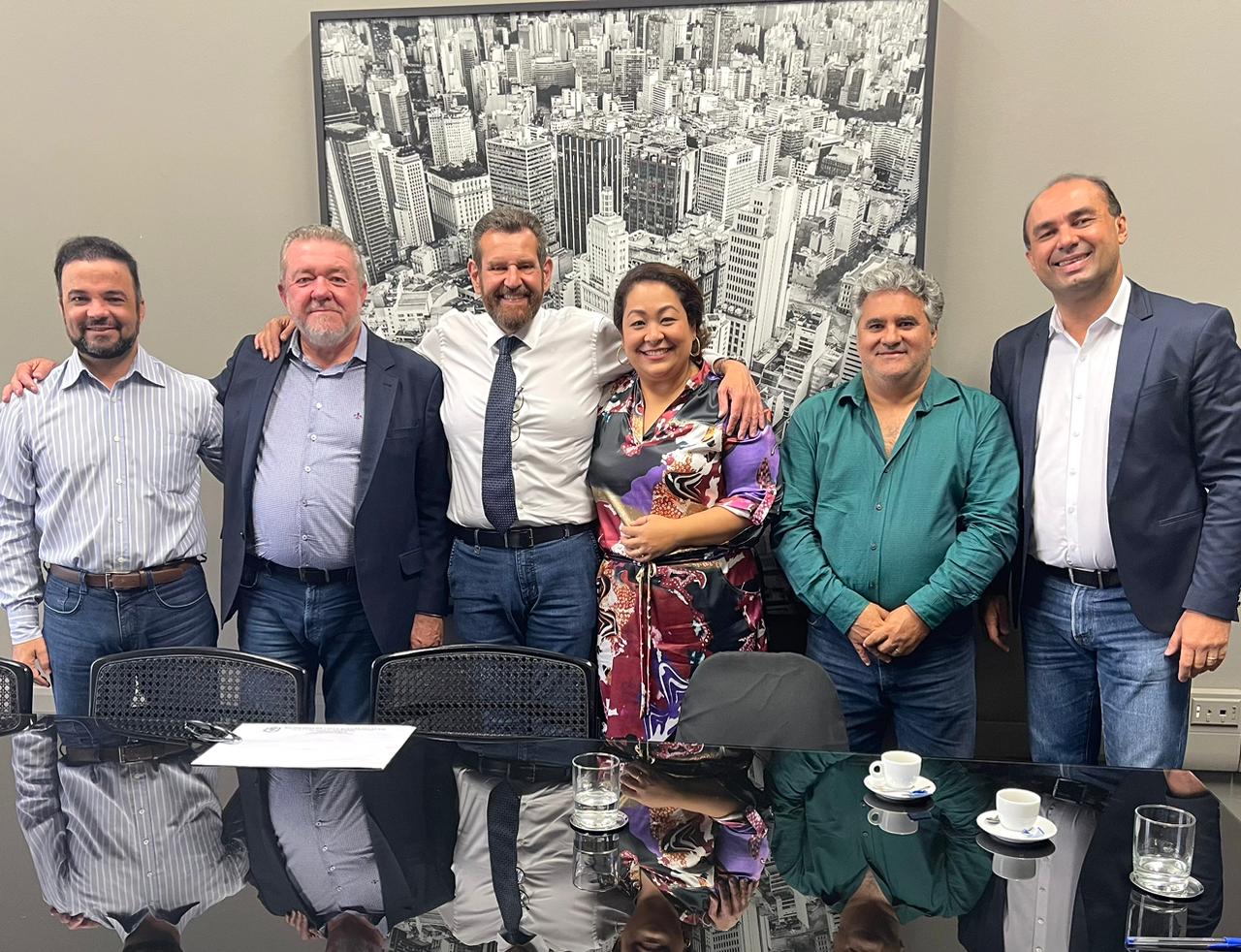 O secretário de governo Marcos Penido, que faz parte da equipe de Rodrigo Garcia na transição, reuniu-se na quarta-feira (7), com o presidente do Codevar (Consórcio de Desenvolvimento do Vale do Rio Grande), o prefeito de Vista Alegre Luiz Antônio Fiorani, mais o articulador do encontro, o ex-prefeito de Bebedouro Fernando Galvão. Presentes o prefeito de Monte Azul Paulista, Marcelo Otaviano; o secretário executivo do Codevar, Victor Borges e a chefe de gabinete da SDR (Secretaria de Desenvolvimento Regional), Juliana Ogawa. “Na pauta, assuntos relacionados ao consórcio e a preocupação da permanência e continuidade de alguns programas, como a contratação da frente de trabalho estadual, que gera 4 mil vagas de trabalho em nossa região”, informa Galvão, adiantando que já está em discussão, a escolha dos nomes que devem assumir os cargos de presidente e vice-presidente do Codevar, no próximo biênio. A eleição acontece em 16 de dezembro.