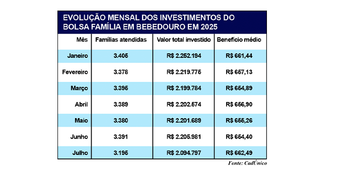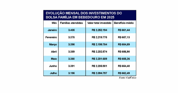 Somente no mês de julho, o investimento foi de R$ 2.094.797, distribuído a 3.195 famílias, que beneficiaram diretamente 8.773 pessoas. O benefício médio por núcleo familiar foi de R$ 662,49, superando os valores médios dos meses anteriores. Apesar de leve queda em número de famílias e pessoas atendidas em relação aos meses anteriores, o valor médio por família se manteve dentro da média anual.