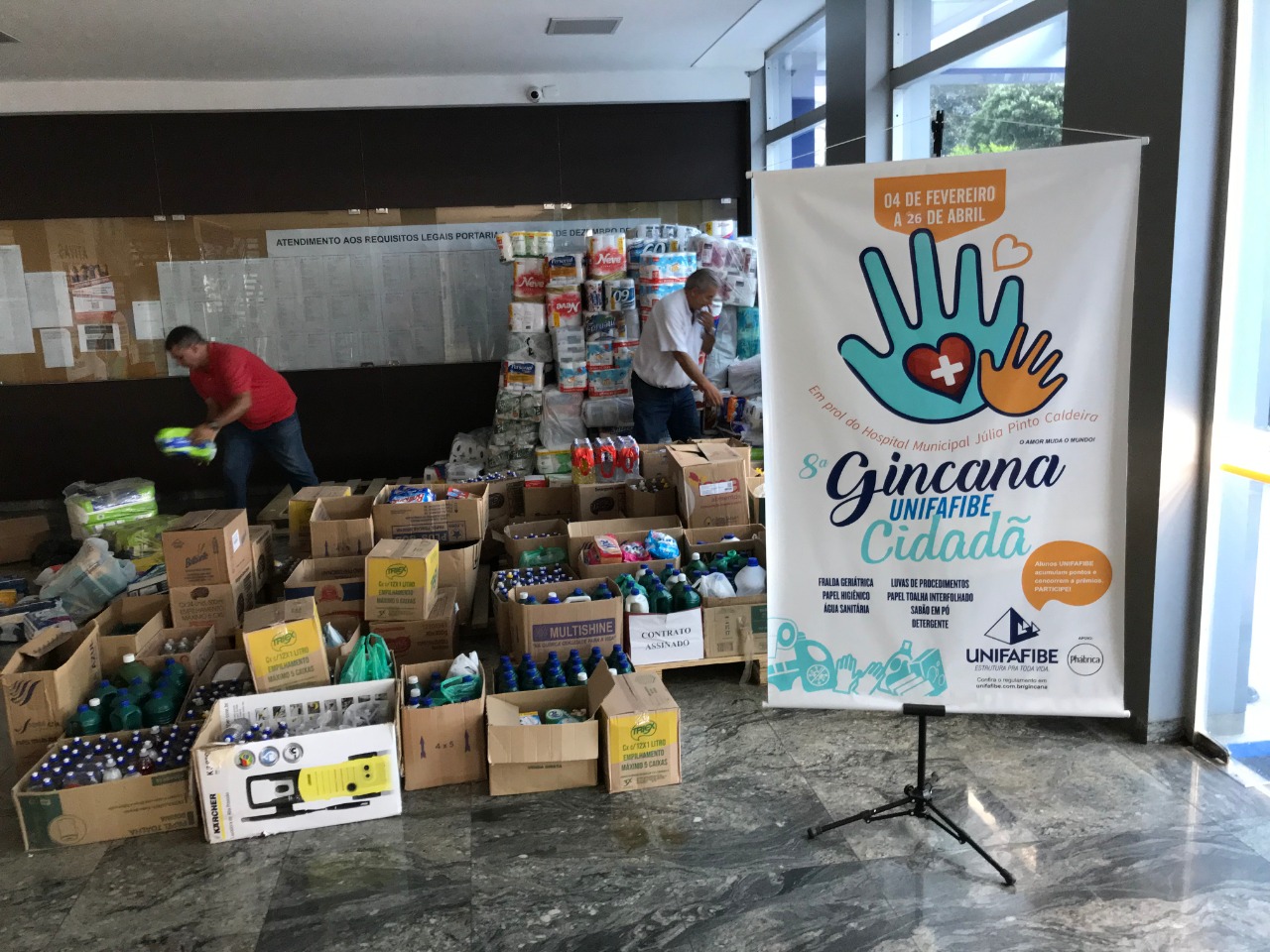 Com intuito de incentivar seus alunos ao exercício da cidadania e inibir a violência dos trotes, no início dos semestres, o Centro Universitário Unifafibe realiza a Gincana Cidadã. Nesta 8ª edição, as arrecadações foram para o Hospital Municipal ‘Júlia Pinto Caldeira’. A entrega foi realizada na manhã de quarta-feira (8), com a presença da secretária de Saúde, Sônia Junqueira e demais representantes do HM, e a pró-reitora do Unifafibe Maria de Lourdes Contro.