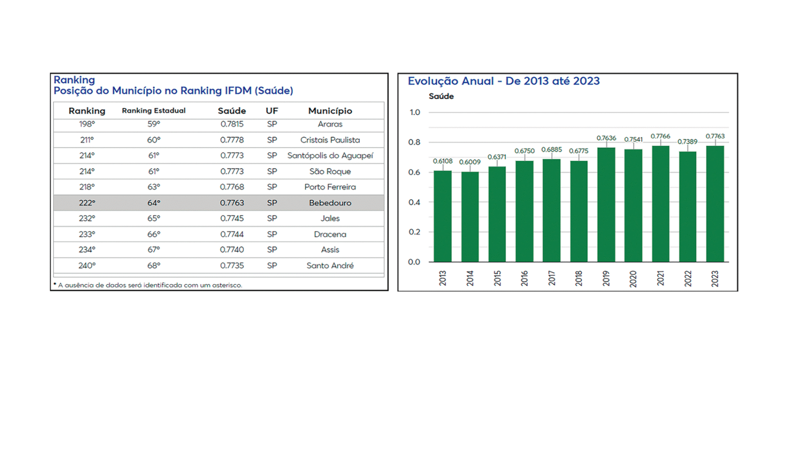 A Gazeta segue acompanhando os resultados do IFDM (Índice Firjan de Desenvolvimento Municipal), que teve edição divulgada no início de maio de 2025, com dados consolidados referentes ao ano-base de 2023. Nesta edição, apresentamos o desempenho de Bebedouro no indicador da área da Saúde, que integra o estudo ao lado dos eixos de Educação e Emprego & Renda, este abordado na edição da Gazeta de 17 de maio.