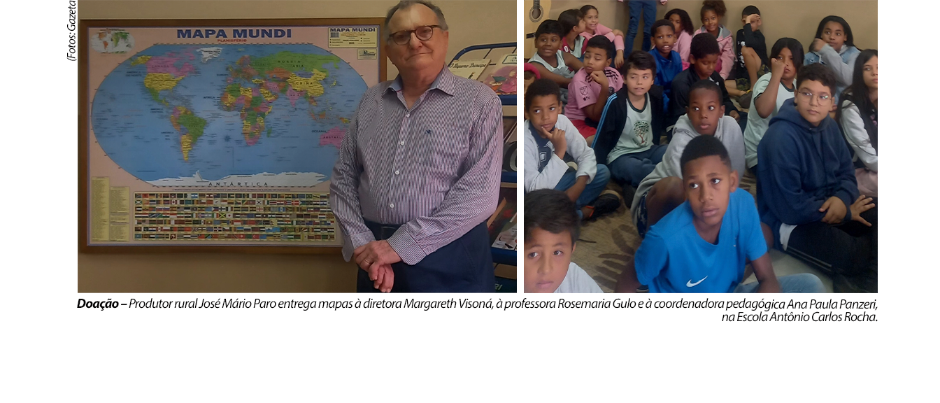 A Escola Municipal Antônio Carlos Rocha, conhecida como “Rochinha”, recebeu na manhã de segunda-feira (3), a visita do produtor rural José Mário Paro, que fez a doação dos mapas mundi e do Brasil à unidade, representando todas as escolas de Bebedouro que também receberão o mesmo material. A entrega foi recebida pela diretora Margareth Visoná, pela coordenadora pedagógica Ana Paula Panzeri e pela professora Rosemaria Cristina Gulo, que agradeceram o gesto e destacaram sua importância para o ensino.