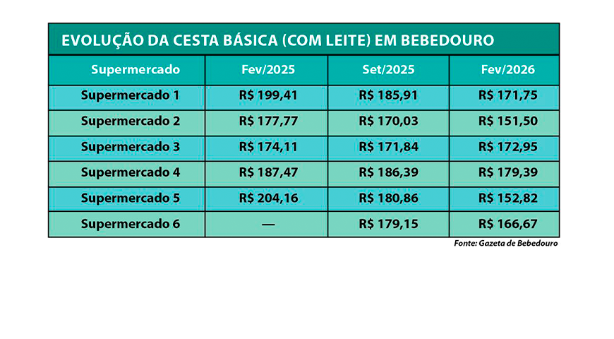 A cesta básica pesquisada pela Gazeta ficou até 11% mais barata no comparativo anual, segundo levantamento da Gazeta realizado na quarta-feira (25 de fevereiro). A reportagem visitou seis supermercados da cidade e pesquisou os preços dos alimentos, considerando sempre o produto mais barato disponível na gôndola, desde que não estivesse em promoção no dia analisado.