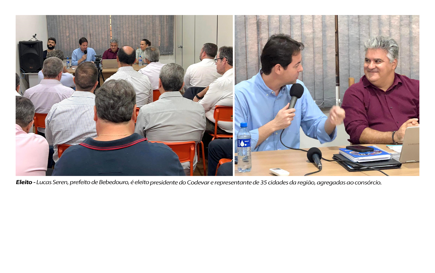 O Codevar (Consórcio de Desenvolvimento do Vale do Rio Grande) definiu na segunda-feira (28), em Assembleia, sua nova presidência e Conselho Fiscal, em sua sede, em Barretos, com participação de 24 municípios, dos atuais 35 que compõe o consórcio. A nova composição foi eleita por aclamação e aprovada por unanimidade e o prefeito de Bebedouro, Lucas Seren, foi escolhido como presidente do consórcio, que até então ocupava o cargo de vice-presidente.