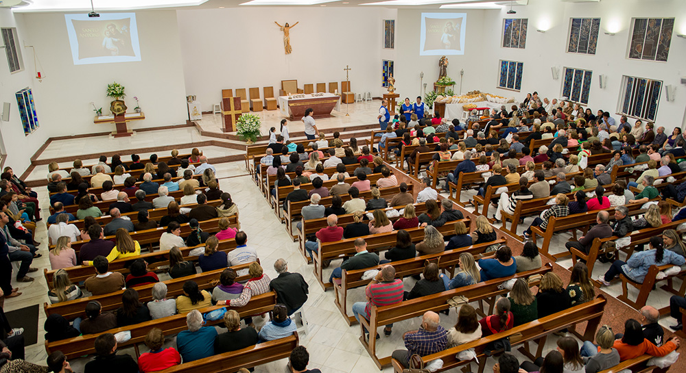 Mil e cem pessoas participaram da celebração em louvor a Santo Antônio, na noite de terça-feira (13), na capela de Santo Antônio, da paróquia de Nossa Senhora Aparecida. Presidida pelo Pe. José Benedito Di Túlio, a missa foi finalizada com a bênção dos pães, símbolo de fartura, segundo a tradição.
