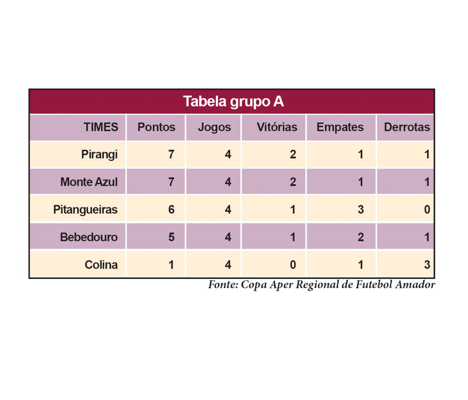 No domingo (26 de fevereiro), aconteceram os últimos jogos da primeira fase da Copa Aper Regional de Futebol Amador. O time representando Bebedouro, o Manchester, entrou em quadra contra o Pitangueiras e a partida terminou em zero a zero. Com isto, Bebedouro terminou em quarto lugar na tabela classificatória, com cinco pontos, sendo quatro jogos, uma vitória, uma derrota e dois empates.