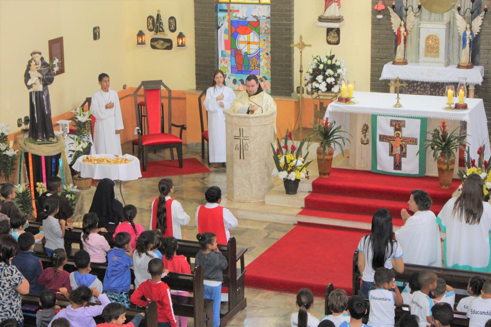 Na manhã de quarta-feira (13), missa celebrada na Paróquia Sagrado Coração de Jesus, foi dedicada ao padroeiro do Educandário, Santo Antônio. Alunos da instituição participaram da celebração que teve a tradicional benção e distribuição de pães, para que os fiéis católicos que os guardar, tenham alimentos em abundância.