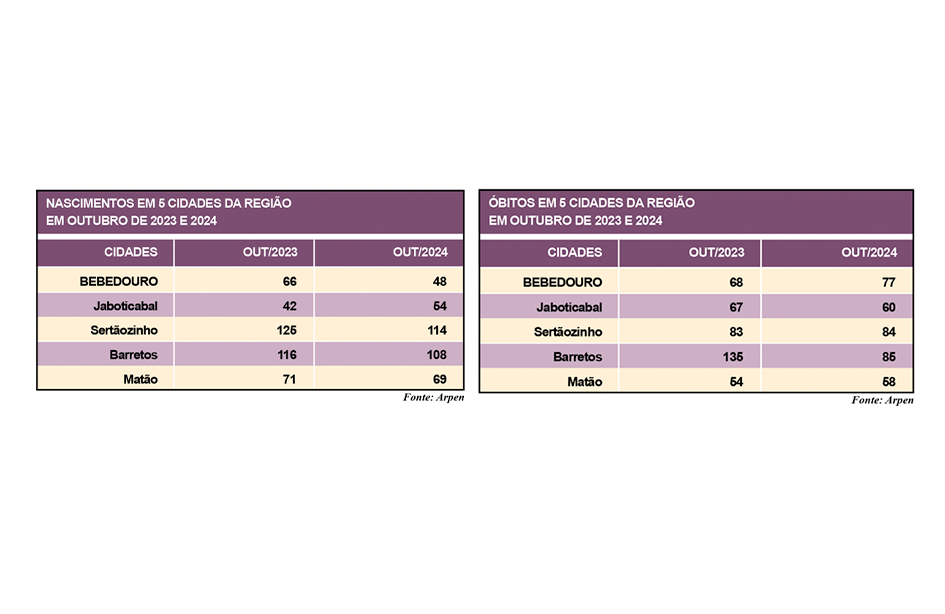 A Gazeta analisou os dados de nascimentos e óbitos, no mês de outubro, de Bebedouro e outras quatro cidades da região, Barretos, Sertãozinho, Jaboticabal e Matão. Somente Bebedouro e Jaboticabal tiveram mais óbitos que nascimentos, repetindo o cenário do mesmo período do ano passado, quando Barretos também estava nesta lista.