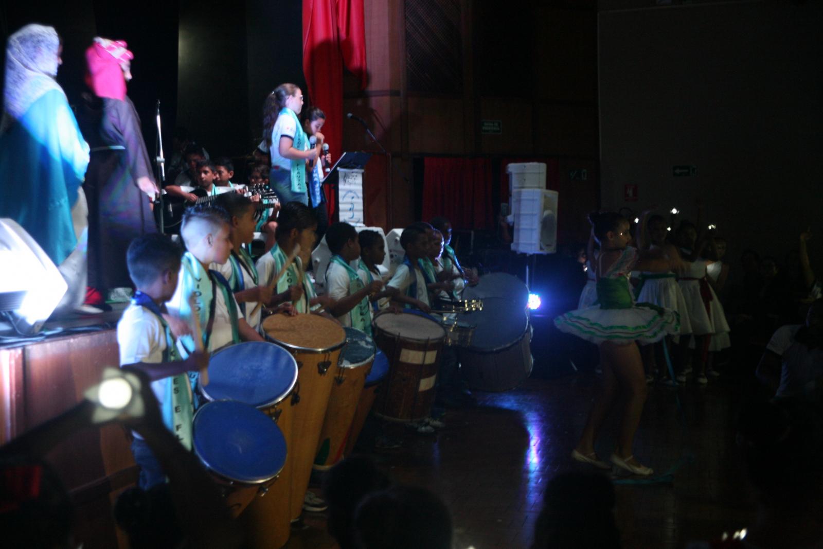Alunos da rede municipal de educação encantaram e emocionaram a platéia que lotou o Teatro Municipal, na noite de terça-feira (28). A ‘Orquestra Jovem de Violões e Flautas’, mais a participação do grupo Bate Lata, com direito a encenação do nascimento de Cristo, foram aplaudidos de pé pelo prefeito Fernando Galvão (DEM), pela primeira-dama Aline Galvão, pelos pais e familiares dos alunos.