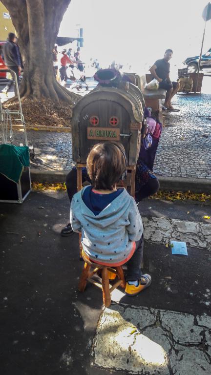 Pequenas histórias acontecem dentro de caixas, apresentadas individualmente. Crianças, jovens e adultos encantaram-se com as sete mini peças, apresentadas simultaneamente e em caixas diferentes.